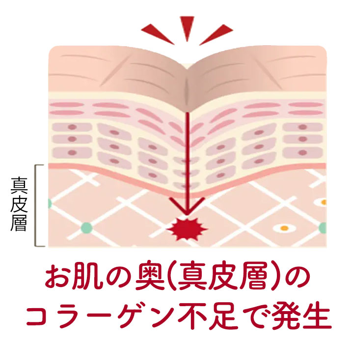 肌の真皮層まで浸透してコラーゲンの産生を促進!お肌の奥からグッと押し上げてシワを改善してくれるんです!